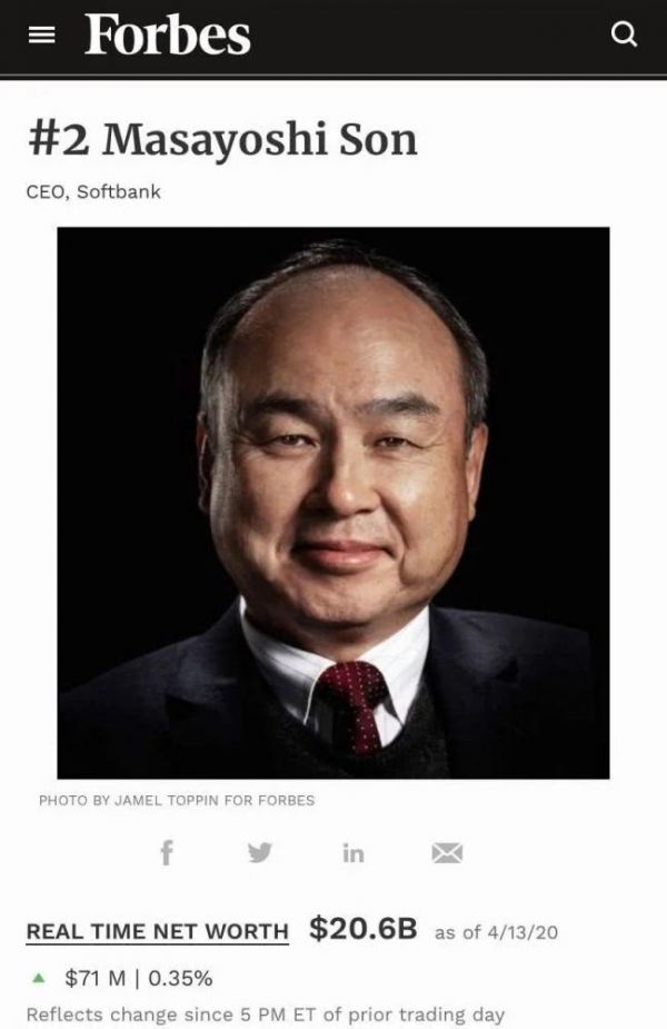而疫情使两者的旗下业务均收到不同程度影响,软银股价暴跌,优衣库多家门店被迫关店。据福布斯富豪榜显示,截至4月13日,孙正义的财富实时净值为206亿美元,而柳井正为221亿美元,两人之间相差无几。