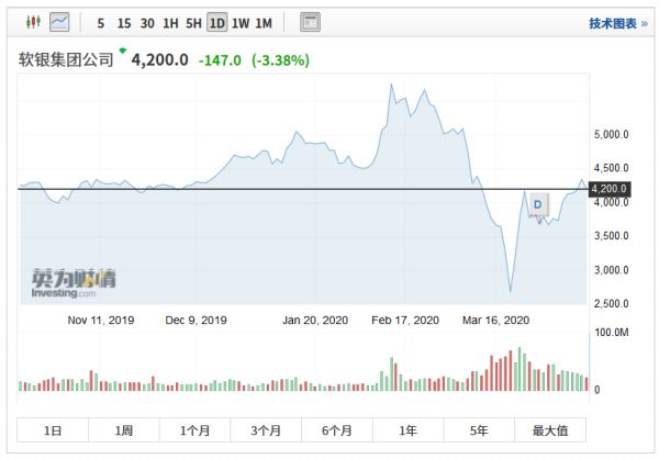 虽然软银正推出一系列举措以改善困境,但整体来看,今年软银股价整体仍成走低趋势,4月13日,软银股价下跌3.38%,年内跌幅超10%。