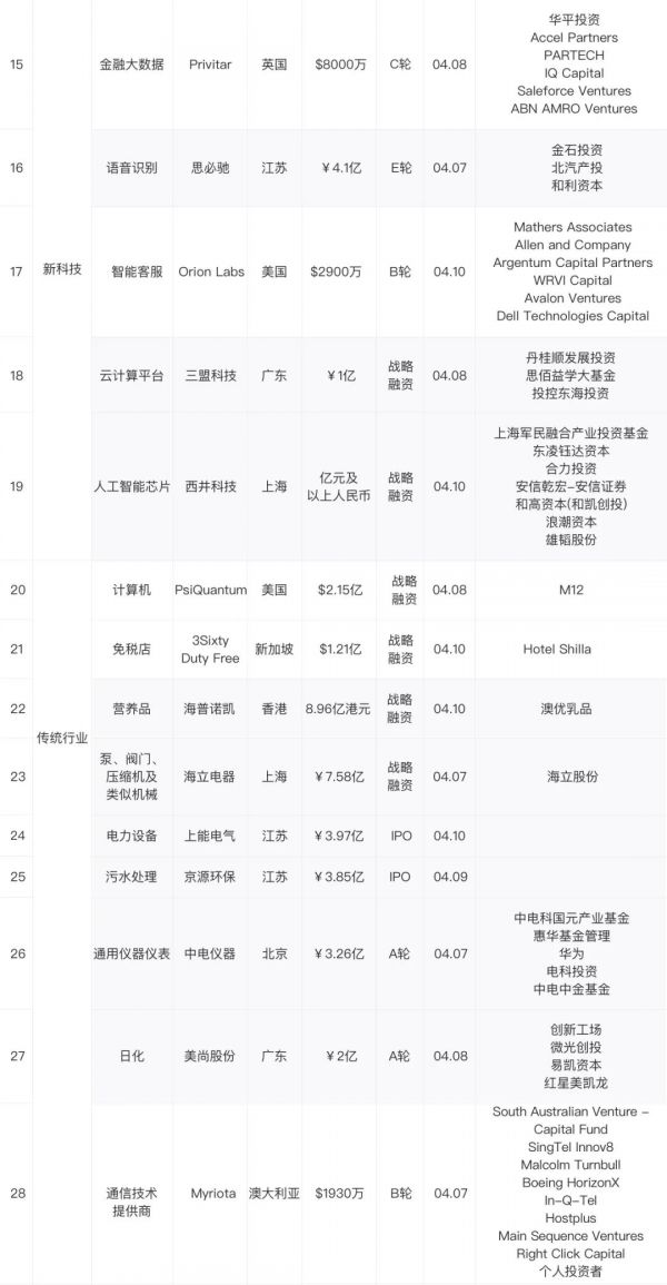 融资金额超亿元的项目名单