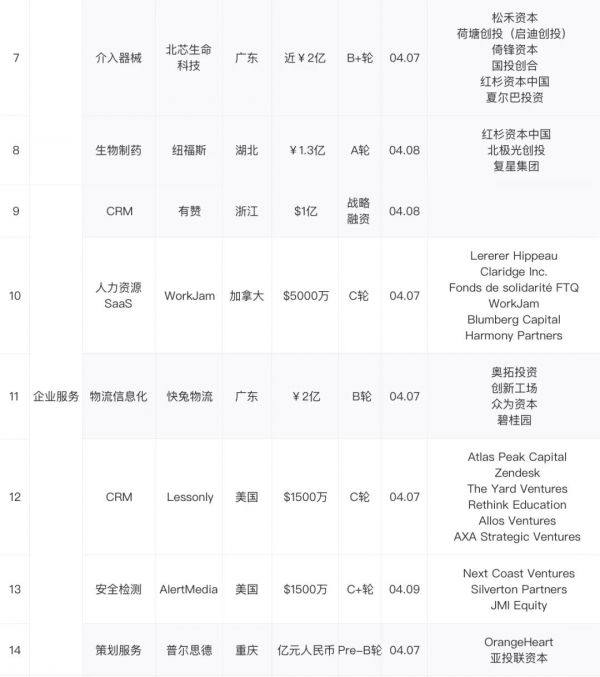 交易金额:近7日交易数据表明,国内中早期阶段资金主要集中于垂直类SaaS服务和大分子生物制药领域,中后期阶段资金主要集中于婴儿乳制品消费、云计算、文娱传媒和医用耗材领域。