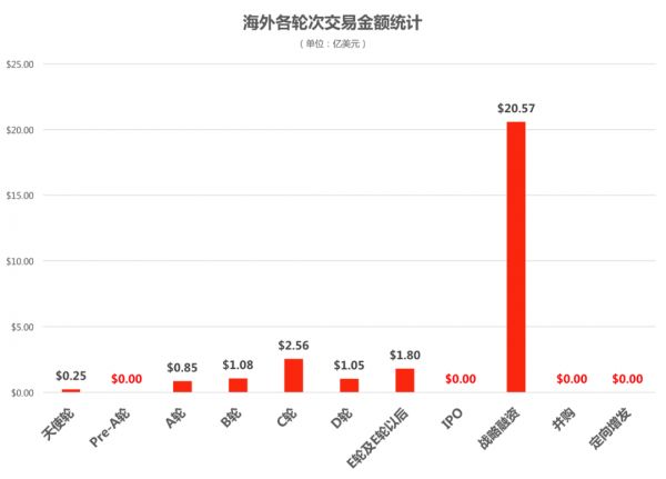 交易金额:近7日交易周期内数据研究表明,海外资金集中流向战略投资阶段,战略投资阶段交易总额占本周海外交易金额总和的73.05%,除Airbnb之外,硅芯片应用领域和大众基础消费等领域备受关注。