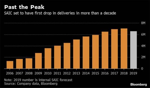 上汽集团近14年销量变化情况(图片来自彭博社)