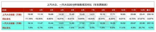 与此同时,整个2019年中,一汽大众有8个月销量的销量优于上汽大众,最终一汽大众在2019年售出汽车207.19万辆,而上汽大众2019年的车型销量为200.18万辆。