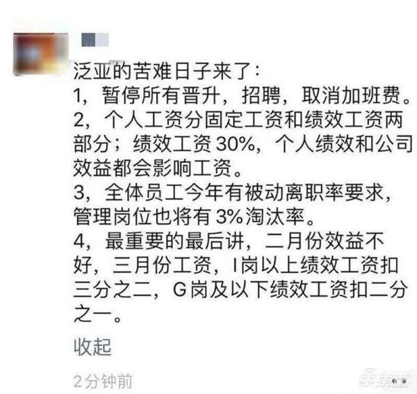 据上汽集团的一位员工透露,上汽通用泛亚将暂停所有的晋升和招聘,取消加班费;调低三月绩效工资;员工有一定的被动离职率等。
