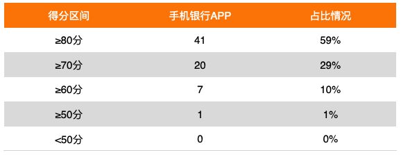 所评测的69款银行APP相较其他类金融APP合规率最高,其中民生信用卡、江苏直销银行、光大惠生活等14款APP评测得分超90。