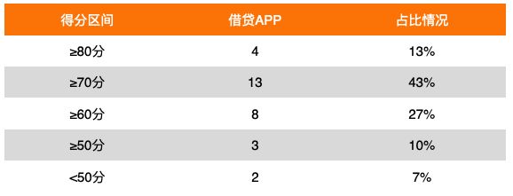 在所评测的20家持牌消费金融APP中仅有苏宁消费金融、招联金融评测得分超过80,近6成得分在70分以下。