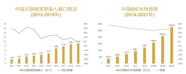 首先,远程办公所需的互联网基础设施在中国市场日渐完善。根据工信部数据,移动互联网爆发式普及以来,我国互联网宽带接入端口数量呈连年增长态势,PC、手机等个人终端设备已趋于市场饱和, IDC建设不断加速,许多大型企业已基本完成信息化建设,并陆续上云。日益丰富的互联网资源为企业实现多人远程办公,提供稳定、易用的底层架构基础。