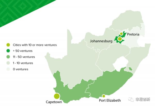 (南非初创公司城市分布,数据来源:VC4A)