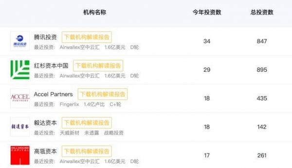 从数据可以看出,虽然一级市场投融资事件低于往常,但腾讯投资、红杉中国、高瓴资本等头部玩家的名字依然出现在投资榜榜首。在资本下行期,他们大举加码,出手频繁。