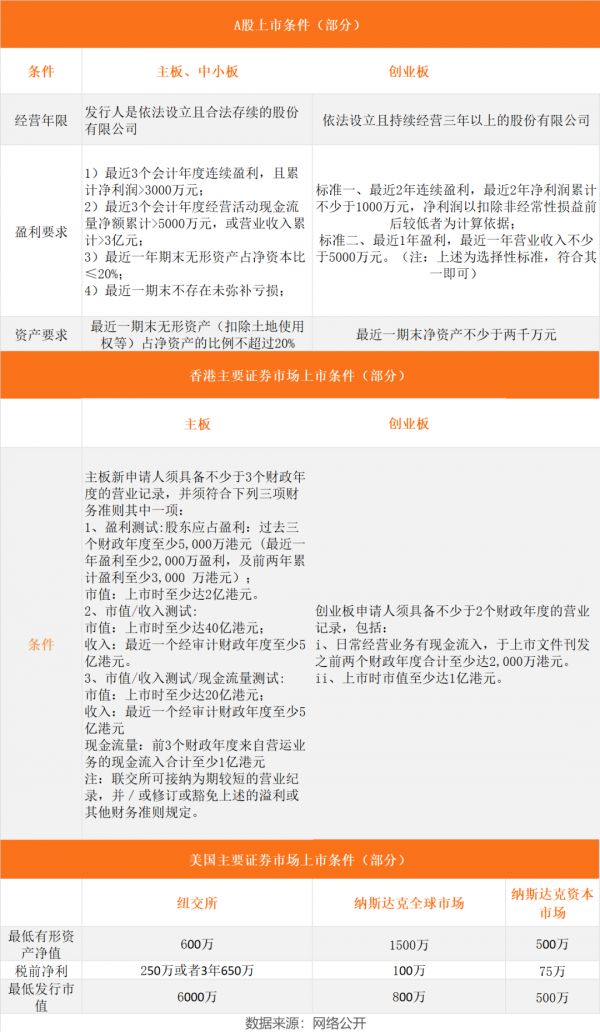 当前,相比较 A 股对企业经营、盈利等方面有着明确指标要求之外,港股和美股在盈利方面的门槛似乎更小一些。
