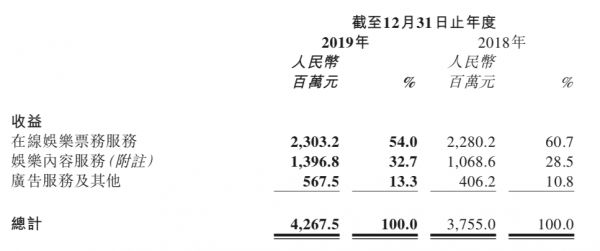 淘票票2019年财年的财报尚未公布,我们可以从猫眼娱乐2019年的财报一窥究竟。