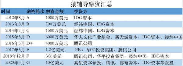 从2012年创立至今,猿辅导几乎每年都有新一轮融资,此次是猿辅导的G轮融资,由高瓴资本领投,腾讯、博裕资本和IDG资本等跟投,距离2018年12月的F轮融资间隔超1年。