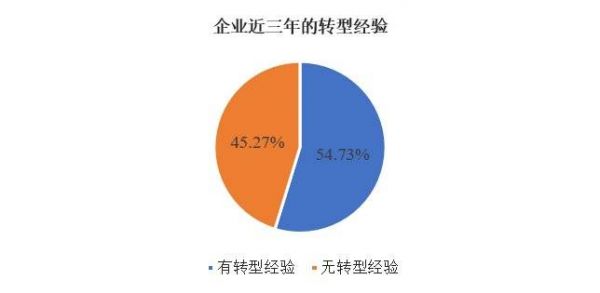 一般来说,若企业近年有过战略转型的经历,则其更可能拥有一种实施战略转型的“传统”,它在未来环境发生变化时也更有可能再次走上战略转型的道路。在调查样本中(如图6),54.73%的企业在此次疫情发生前的三年内进行过某种转型,其他的 45.27%近三年没有进行过转型。