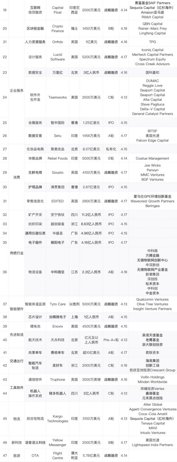 融资金额超亿元的项目名单