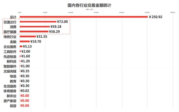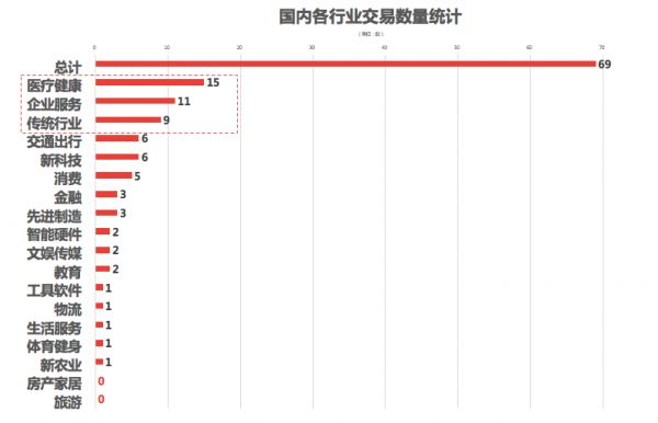交易数量:该7日交易数据表明:交易数量排名前三的一级行业(更全行业知识图谱及细分行业统计,上鹰眼投研APP可了解全貌)分别为医疗健康、企业服务与传统行业。其中,TOP3行业交易数量占总交易数量的50.72%。