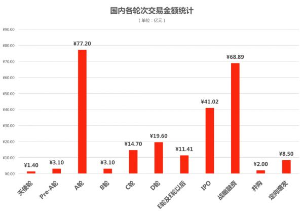 交易金额:近7日交易数据表明,本周期内国内早期市场热度较上一周期明显提升,本周期内资金流入A轮融资阶段规模最大,交通出行整体产业链均呈现活跃态势;中后期阶段,医药耗材领域和传统行业中IPO阶段项目获得大额资金加码。