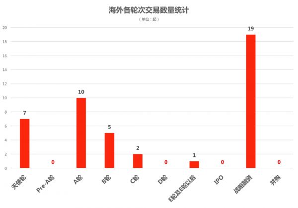 交易数量:近7日交易周期内数据研究表明,海外交易数量主要集中分布在战略融资阶段。