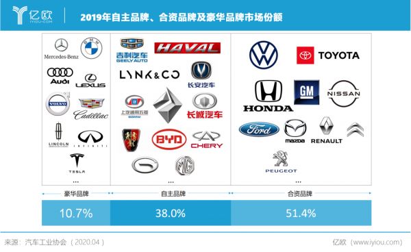 在产业大调整的2019年寒冬,自主品牌乘用车共销售840.7万辆,市场份额较前两年稍有下滑,占乘用车销售总量的39.2%。