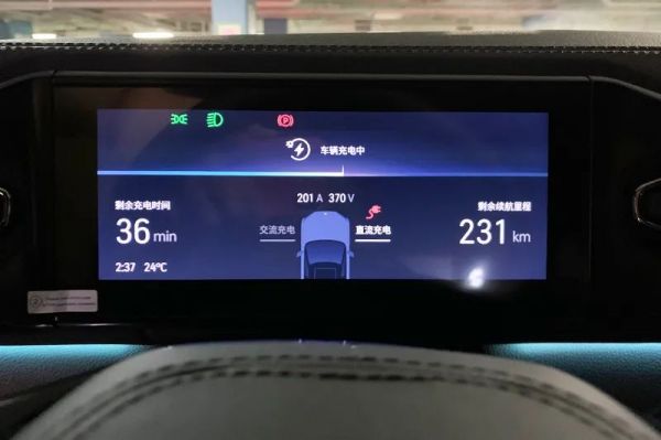 值得一提的是,在充电过程中,除了在手机App和车内仪表盘上可以显示相应的充电状态之外,我们刚才提到的充电桩上的指示灯也可以派上用场。仔细观察你可以发现,条形灯的上面一段会变暗闪烁,这代表着电池待充电的部分,剩下的正常灯带则代表电池目前的电量。随着车辆充电,两段不同形态的灯带长度比例会相应变化,只要从车外一扫,便能大概知道已经充了多少电了。