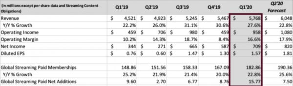 奈飞2020Q1财报:新增用户1577万远超预期,全球付费用户1.83亿
