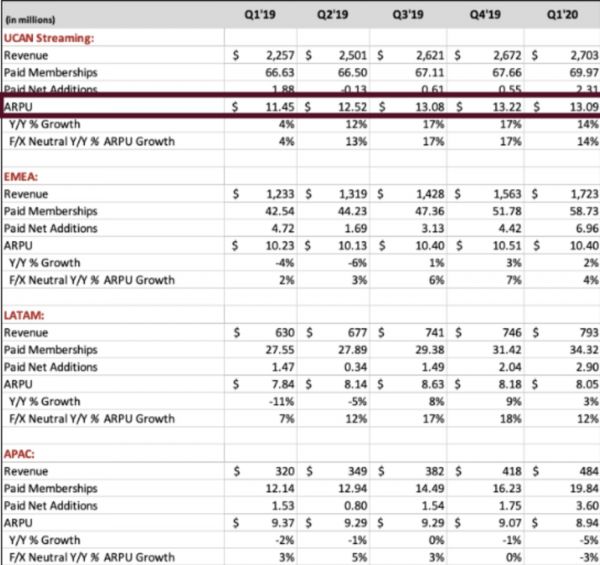 在ARPU方面,财报显示,相比去年同期,本季度增加了8%,但与上季度相比呈下降状态,奈飞方面表示,付费用户增加的时机影响了2020年第一季度的全球流媒体的ARPU值,这也是ARPU连续下降的主要因素,是因为这些新增付费收入会在Q2及之后才显现出来。