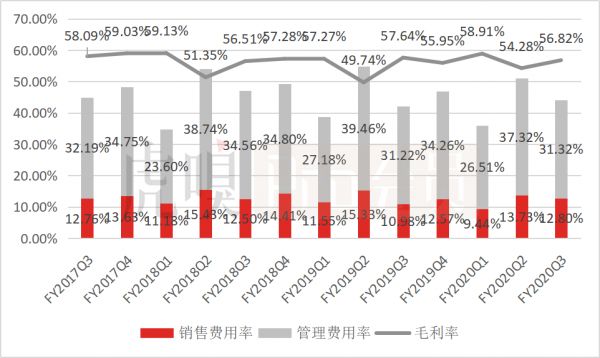 首先,新东方的营业成本主要是教师薪酬、教室租金和教材成本,2017财年Q3、2018财年Q3、2019财年Q3和2020财年Q3的毛利率分别是58.09%、56.51%、57.64%和56.82%,呈现下滑趋势,意味着新东方很难通过压缩成本提升利润率。