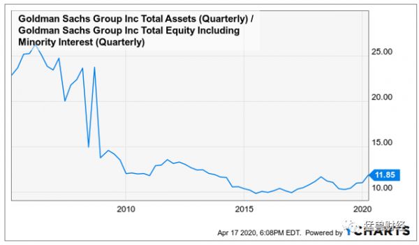 Source: YCharts: GS Total Assets / Total Equity.