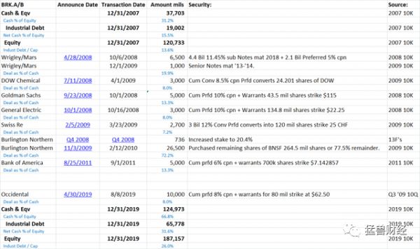 以下是我们根据伯克希尔在2008年全球金融危机时期的主要交易清单: