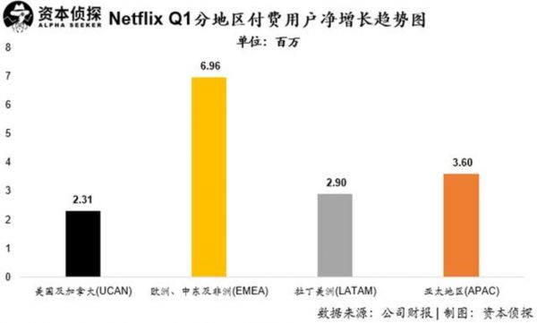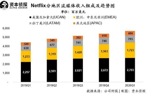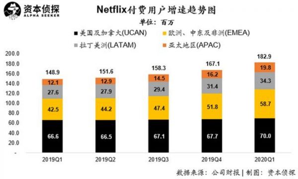 在新增用户来源上,欧洲、中东及非洲地区贡献了最主要的增长,本季度净增696万;拉丁美洲及亚太地区则分别贡献290万以及360万付费用户。北美地区在过去一年内单季度增长已经非常缓慢的情况下,本季度在疫情的推动下净增231万,表现了“反常”的增长势头。