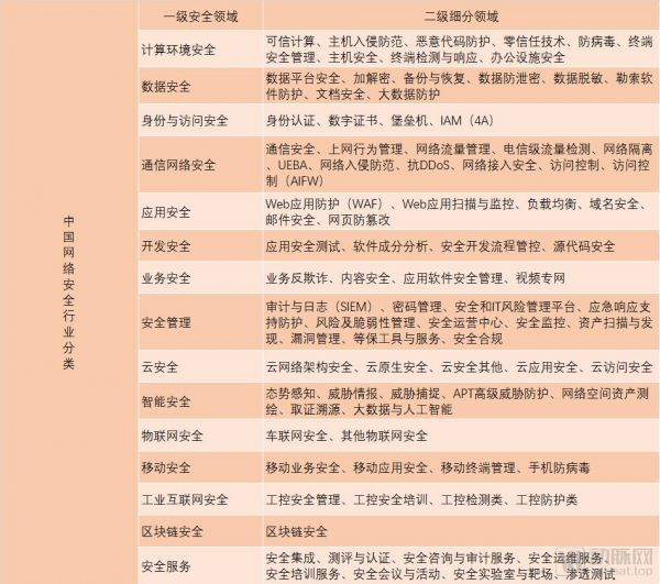 2020年3月,企业级信息安全市场专业咨询机构“安全牛”发布了“2020年中国网络安全行业全景图”。该全景图共分为16类一级安全领域(实际收录15类),100类二级细分领域(实际收录88类)。动脉网整理如下: