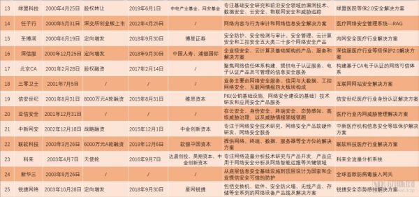 安芯网盾、梆梆安全、联创科技相继完成融资,迪普科技、安恒信息也分别在创业板、科创板上市。观安在第一季度完成超1亿元B+轮融资,为这一领域开了个好头,奇安信在9月完成了15亿元的Pre-IPO融资。