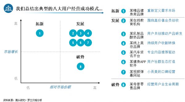 > 破势期企业:这一阶段企业已经占据行业一定的地位或市场份额,如何实现进一步的突破,将需要更进一步回归到用户为本的理念模式,通过持续用户运营和用户价值管理,来探寻企业增长突破点。