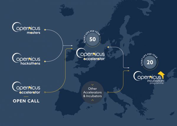 为了促进下游产业的发展,欧盟发布了一系列的举措对创业者进行鼓励和支持。其中包括哥白尼学院、哥白尼大师赛、哥白尼加速器、哥白尼黑客马拉松以及哥白尼孵化计划。