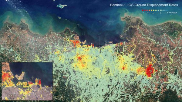 哨兵1号卫星对印尼地震后的建筑稳定性进行监测