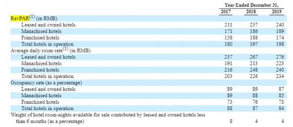 过去三年华住的年度RevPAR仍在逐年增长。但在最近两年间,同店RevPAR的同比增速却逐渐放慢,并在2019年进入负增长。