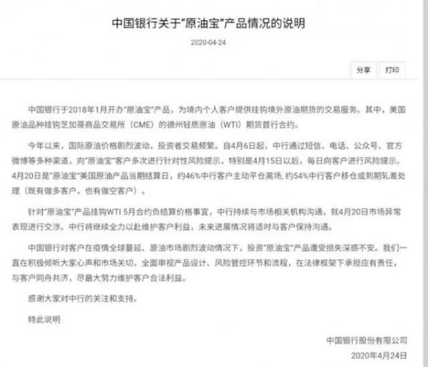 中国银行关于原油宝的情况说明,图源中国银行官网