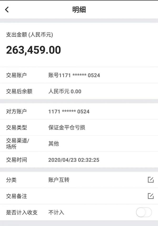 因为前期亏太多,我想去买06期合约,趁着当时价格比较低,或许之后可以把我亏的钱赚回来,我又从朋友那里借来了15万元。4月21号下午的时候用这笔钱交了保证金,买06期合约,要交了保证金才能买,15万保证金可以买15万06期合约,中行原油宝是100%保证金。