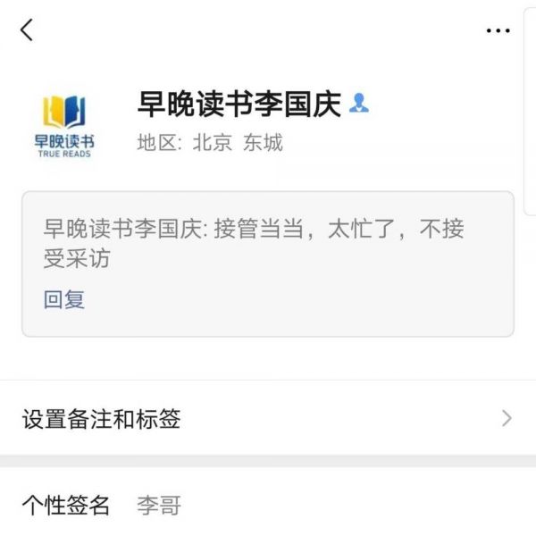 李国庆回复投中网称:“接管当当,太忙了,不接受采访。”