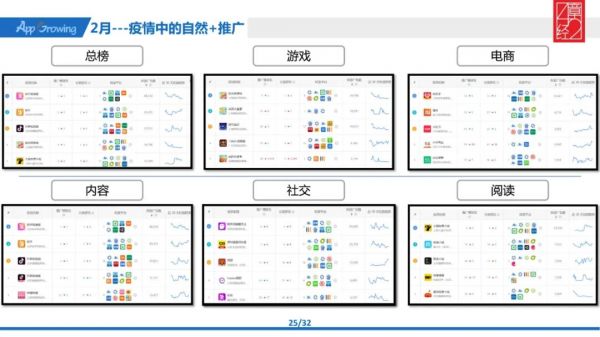 2 月份就已经是在疫情中了,其中有被动也有主动。我们全部拉出来看总榜,还是那几家,快手、抖音等,然后就是在游戏领域里竞争非常激烈。