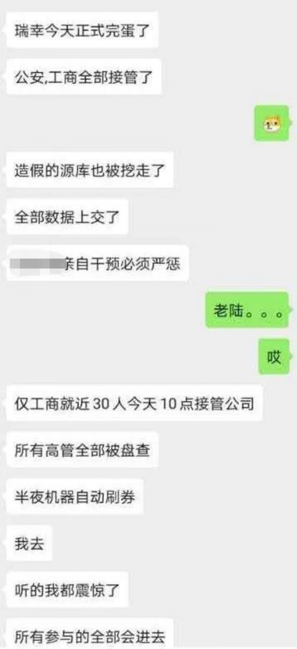 4月27日,有消息称,瑞幸被有关部门接管,全部数据上交,所有高管被盘查。