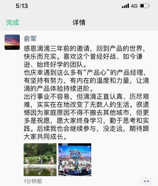 6月10日下午消息,滴滴出行CTO张博在一封邮件中宣布,公司产品高级副总裁俞军因家庭原因需搬离北京,近期将从滴滴离职。俞军离开后,未来仍将担任滴滴产品首席产品顾问及产品委员会荣誉主席,参与重大产品决策。