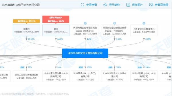 查当当的股权结构,最大股东还是俞渝,她拥有64.2%的股份。李国庆有27.51%的股份,虽然不小了,但是比起俞渝的股份还是太少了点。