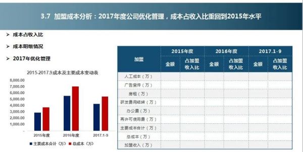 4、利润表科目解读:结合业务特点,对于利润表的收入及成本进行数据确认和分析;收入分析,一般按照直营和加盟业务分解,做收入现状分析、收入过往增长情况、收入毛利率拆解、收入纳税情况分析等;成本分析,一般按照重要性原则,分析的科目必须覆盖总成本80%以上。往往是授权费、人工、房租、广告、课程及系统研发费。