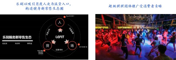 另一方面,新兴健身品牌更加青睐线上结合线下运营方式。如健身APP “Keep”在2018年开始在线下开直营健身场馆;美国以健身训练体系内容为主的公司——Crossfit,目前也已进驻中国开设上百家线下门店。以主营团操课品类的网红品牌“超级猩猩”、“Shape”擅长以线上线下融合方式去深度运营用户,并通过健身与音乐节、与大型户外活动的跨界方式,延伸到个性化线下场景激发用户好感度、进而提升复购率。