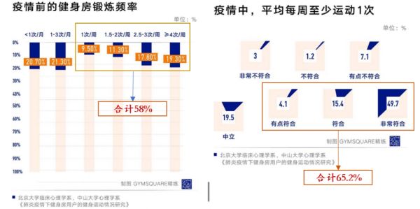 资料来源:北京大学临床心理学、中山大学心理学系《肺炎疫情下健身房用户的健身运动情况研究》, GYMSQUARE精练