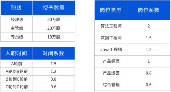 期权授予数量=职级基数×岗位系数×年限系数×其他系数