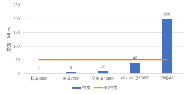 随后,带宽进一步提升、宽带接入成本快速下降,在线视频网站开始爆发式的增长,随着带宽的提高,网络视频的清晰度也在快速提升,10Mbps的带宽就足以支持1080P全高清视频的播放(图 6)。在如今家庭宽带中50Mbps甚至更高的带宽已较为常见,手机端的4G网络也可以提供大约50Mbps的带宽,这使得视频网站可以提供与本地观影差异不大的体验。