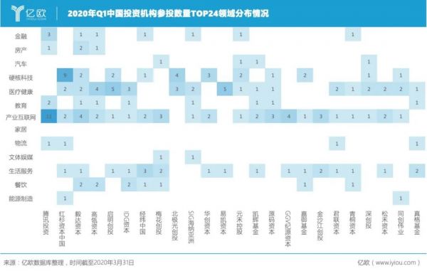 亿欧:2020年Q1中国投资机构投资数量TOP24领域分布情况