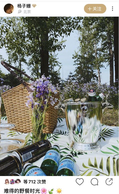 谈到如今的野餐热,Nina认为是一种对海外文化的效仿。野餐风潮确实是从Instagram上开始兴起。最早国内的一批时尚博主及网红,经常会参考Instagram的生活方式、拍照角度,甚至照片后期调色,也就是如今大名鼎鼎的“ins风”。 国内博主效仿Instagram,再通过国内的社交平台影响粉丝,最终在人群效应的作用下,形成一种社会风尚。 据Nina观察,海外博主其实早在2012年Instagram上线的时候,就开始发布与野餐相关的内容。随着国内小红书等平台兴起,大批生活方式博主涌入Instagram学习模仿。从2018年开始,野餐作为新生活方式,开始影响京沪两地的都市丽人。尤其是追求洋气的上海小姑娘,算是国内野餐的先行者。