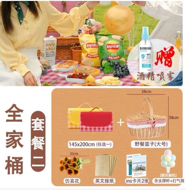 最直观的,就是野餐所需要的道具。在淘宝输入“野餐”搜索,贴心的商家早就准备好了野餐套装,包括野餐篮、餐布、吊床、气球等等。从事家居软装的设计师小怡对硬糖君表示,网络上大行其道野餐篮其实就是早几年软装设计中收纳篮的一种变体,成本价最多不过十几块钱,如今却摇身一变价格涨到一百左右。
